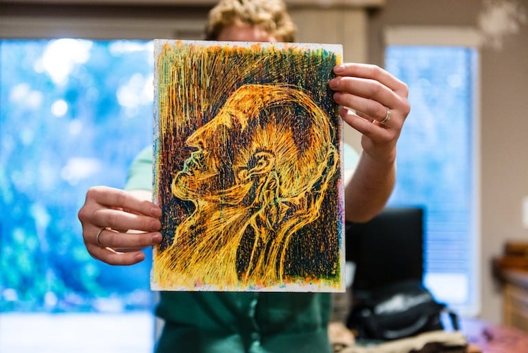 It’s the little things, right? During a psychiatric hospitalization in college, a nurse handed me a box of crayons. That small gesture changed everything. Drawing became a central part of my healing – and eventually, a larger metaphor for my talks and my approach to filmmaking. It reminded me that expression and identity look different for everyone, that our paths aren’t linear, and that the little things really do matter. I chose to share my story openly – partly as a personal challenge to myself, and partly to invite others to reflect on their own. After I was discharged, I began sharing my story publicly and auctioning my crayon drawings to raise money for suicide prevention programs. That instinct to create, connect, and pay it forward still shapes my work today. As I got back track, I went on to earn my B.S. in Human Development at UC Davis.